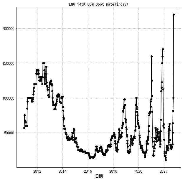 LNG現貨船運價 圖片來源:受訪者供圖 在陳偉傑看來,影響LNG船運價波動的主要因素有兩個方面,其中天然氣商品市場價格佔主導因素,其次是運輸市場供需關係,即運力供給和運量需求之間的關係。在運輸市場運力投放沒有明顯變化的情況下,LNG運輸需求大幅增加,也會帶來運價大幅上升。