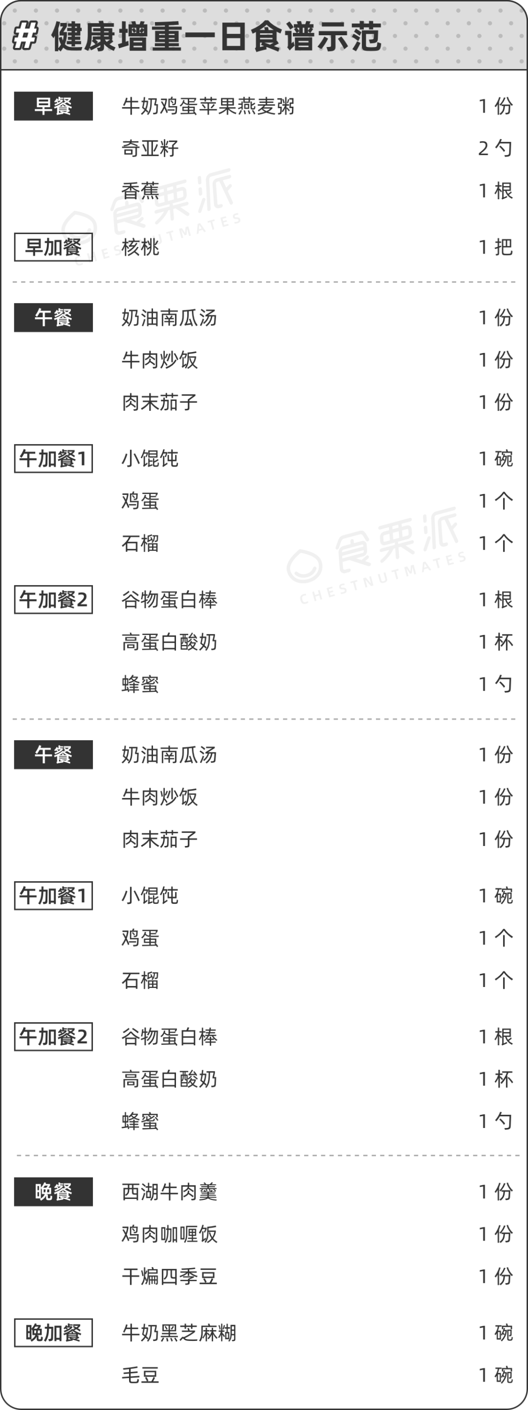 所以又回到前面説的,增肥也要堅持均衡飲食,提倡食物多樣化,不挑食。