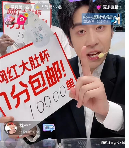 不得不説,大肚杯一直是各主播“捧在手心”裏的活動。一業內人士提到,“0.01元的大肚杯,足以讓直播間人數上升,而不間斷地放‘福利’,則會讓更多地人留在直播間。引流、增長人氣,主播帶貨也就更容易變現。”