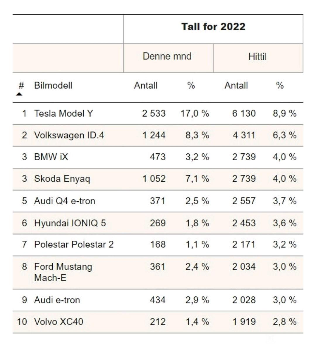 今年上半年挪威的電車銷量,前十名還全是國外品牌,硬要説能和中國沾邊的,也就是極星。