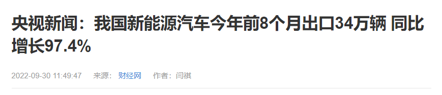 除了這個,今年前 8 個月,咱們的新能源汽車出口也增長了 97.4%。