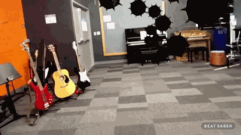 上一代Quest2有通過攝像頭看到外部環境的功能,只不過畫面是黑白的,主要用來在進入沉浸體驗之前對於安全區進行標定。而Quest Pro能看到彩色的外部環境,還提供了做混合現實開發的工具包,甚至在發佈會上扎克伯格還展示了一段在混合現實下玩節奏光劍的畫面。