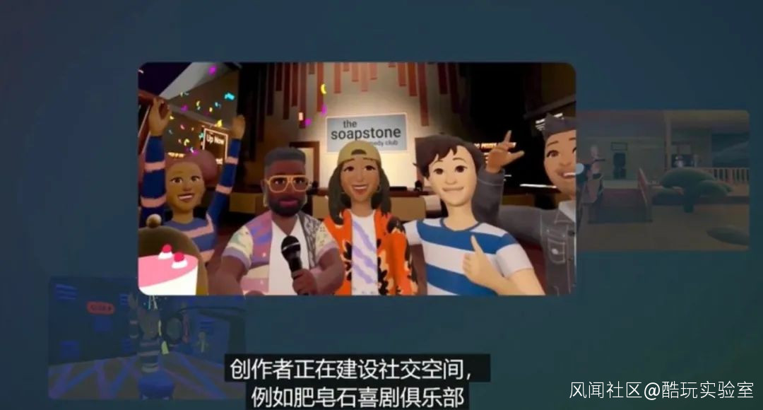 而其中的核心app是META自己做的Horizon系列,説白了就是我們不用對着屏幕攝像頭聊天了,而是可以跑到一個虛擬環境當中,用我們的虛擬形象跟別人一起玩遊戲,一起聊天,一起工作開會什麼的,而且還可以套娃,再把別的手機前,電腦前的人接入到虛擬環境中的虛擬屏幕上。
