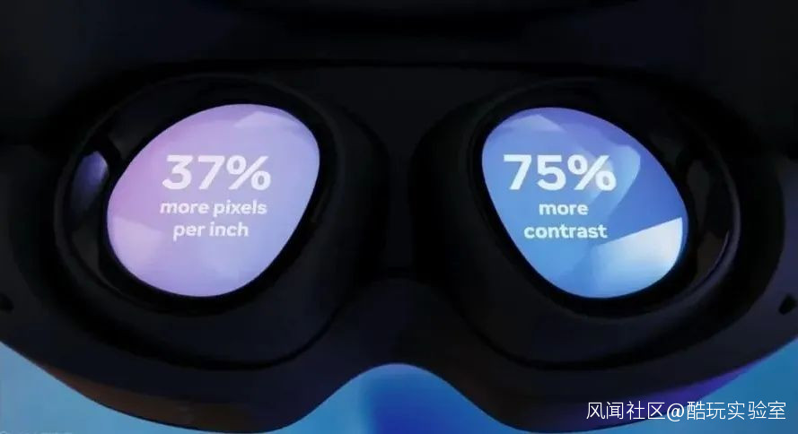 原來Quest2一斤多的重量,過於前置的重心,戴久了壓得臉頰非常難受,這代用Pancake透鏡組合替代了原本的菲涅爾透鏡之後,厚度減了40%,並且設計上把電池放在了用户腦袋後面,讓整個重量分佈更加均勻。