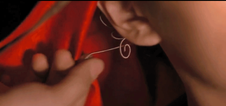 大唐國師陸離紅衣高帽,將簪子插入腦後穴位,搖身一變變成武則天身邊女官。