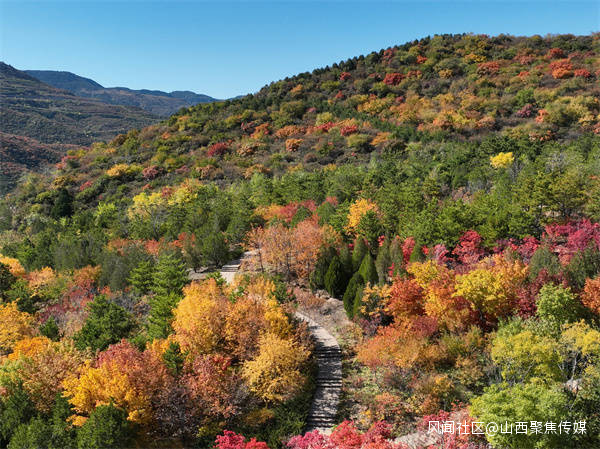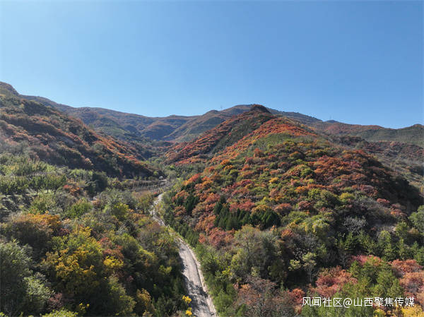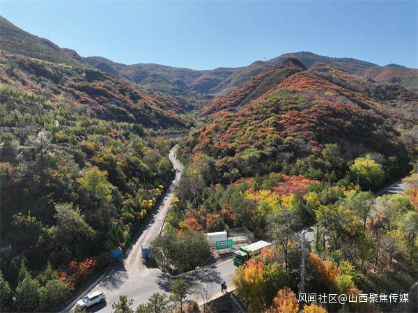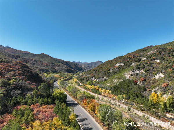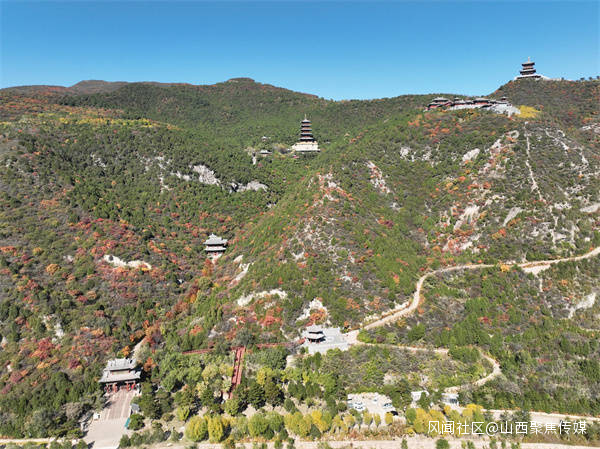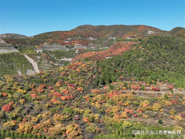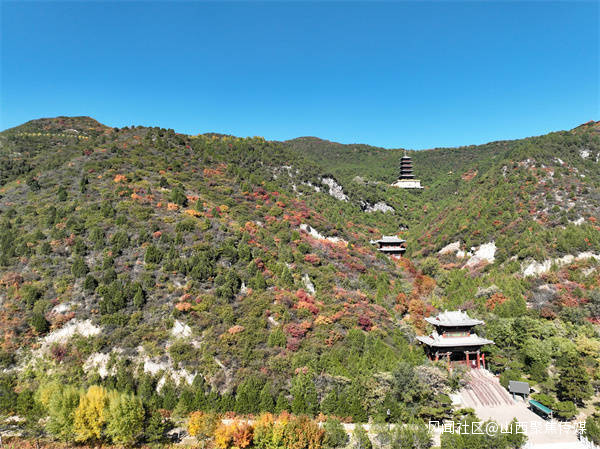 太山紅葉,是太原市秋景中的一景。每年霜秋,是觀賞紅葉的最佳時節,在這山巒環抱的凹腰裏,一株株松柏像一座座用翡翠雕塑的尖塔,巍然挺立在懸崖峭壁上。滿山遍野,呈現着一片明晰鮮綠的顏色。而那紅葉在松柏之間,恰似綠草地鋪上赤紅的地毯;那紅葉又似一團團紅霞降落山間;那些零散的紅葉,像一棵棵鮮紅奪目的瑪瑙鑲在其間,大自然構圖如此美妙,恰似一個巧於設計的畫家,精心繪製的美景,原來太山生長着一種灌木,名叫黃櫨,一到秋天,樹葉變紅,特別是經過霜打以後,樹枝變成朱紫,村葉呈現深紅色。