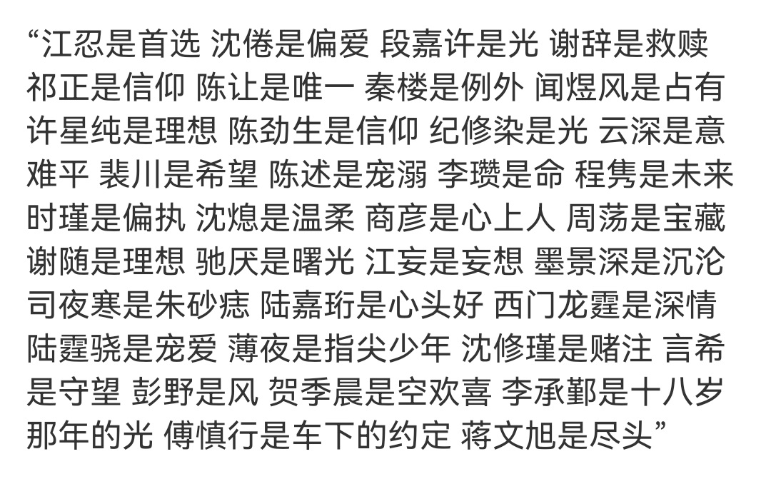 “大神”這一區間,匪我思存、顧漫缺席(《驕陽伴我》與顧漫的《驕陽似我》一字之差,卻是原創劇本),桐華僅1部。中堅層裏有《親愛的熱愛的》《周生如故》原著作者墨寶非寶,有耽美頭部作者Priest,也有存在融梗抄襲爭議的《少年的你》原著作者玖月晞。
