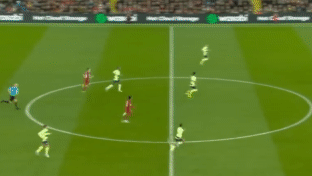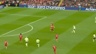 薩拉赫和菲爾米諾直襲球門、左翼進攻拉空曼城中路、控制兩翼、竭力切割丁丁。