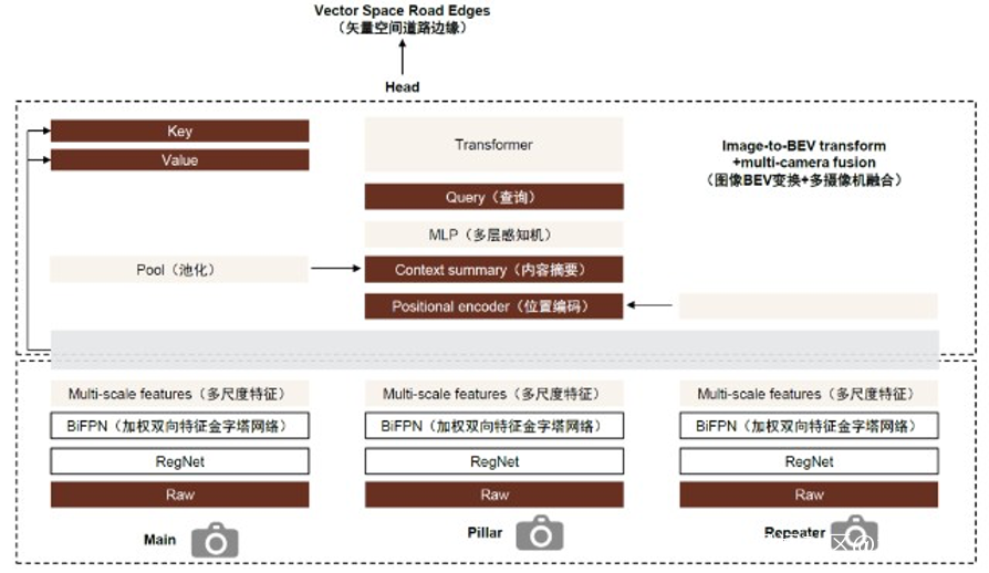在具體技術路徑上,智行者設計了一套重感知的智能駕駛算法架構,關鍵點包括:重感知,輕地圖、基於BEV多傳感器時空融合感知框架、基於Transformer的多傳感器特徵和多視角特徵融合機制。