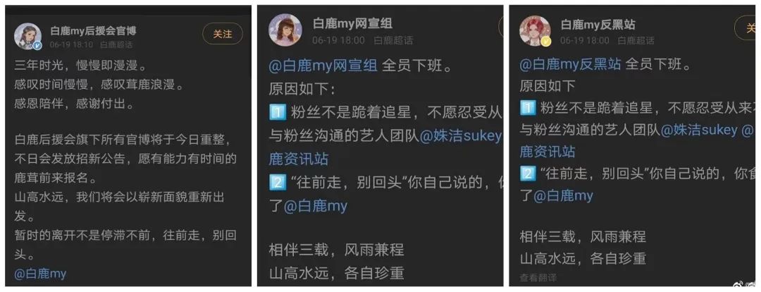 作為平台S級IP項目,板上釘釘的事似乎很難再扭轉,但此事帶來的負面影響,卻開始發生。在《長夜燼明》確認班底後,白鹿粉絲後援會突然宣佈重整,反黑站全員下班,宣傳中心、網宣組、數據組均宣佈解散。其反黑站表示“粉絲不是跪着追星,不願忍受從來不與粉絲溝通的藝人團隊”,似乎是不滿團隊沒聽從粉絲意見接受了“二搭”。