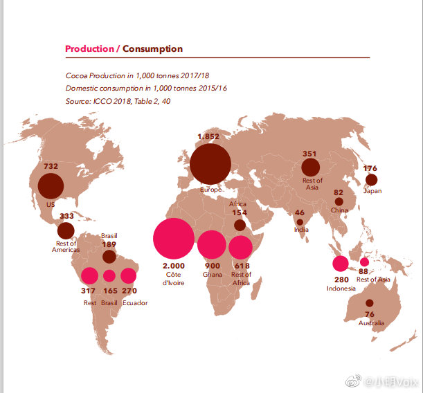 但是,供應端的產量與需求端是不匹配的。2018年,全球可可超產30萬噸。而這一年,僅科特迪瓦的可可收成就增長了40萬噸。