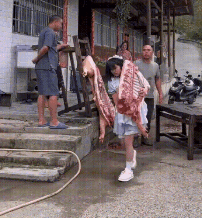 視頻裏,她上一秒還抱着一隻小羊親親,下一秒,就把小羊摁在了鐵架上,手起刀落,只用了八分鐘,就把小羊蜕變成了小羊肉。