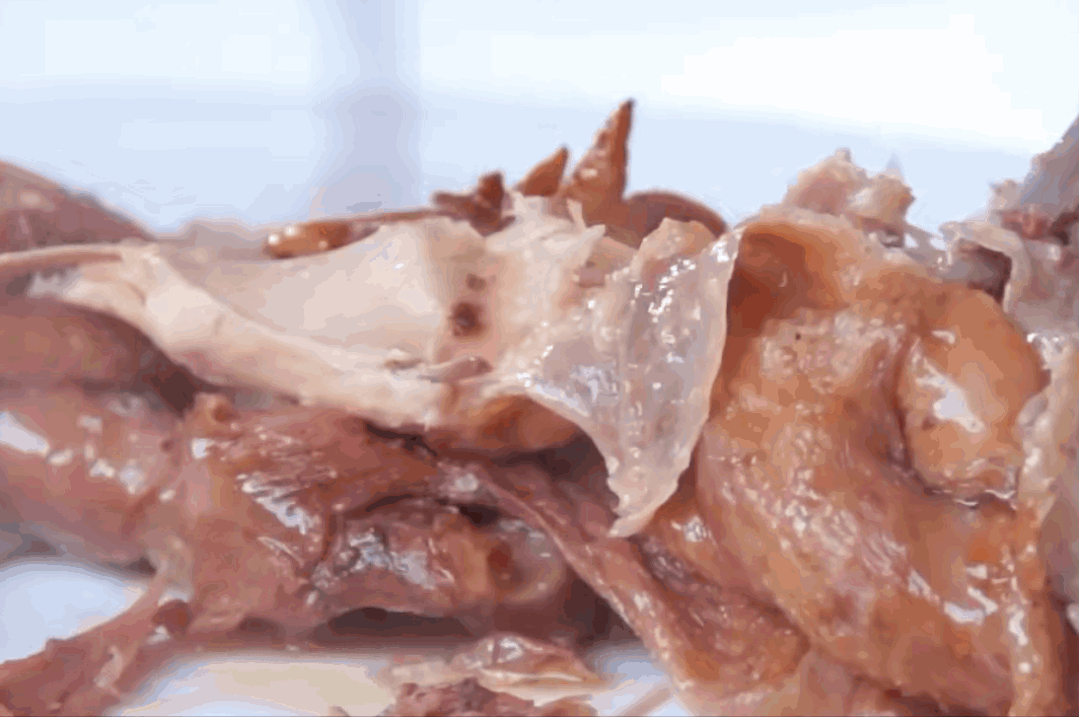 相對於燒雞、烤雞,扒雞最大的不同就體現在時間上,雛雞要燜6至8小時,老雞要燜8至10小時。經過長時間的燜煮,拎起雞腿抖上一抖,肉骨即可分離,謂之脱骨。但是,並非所有脱骨的雞都是德州扒雞。