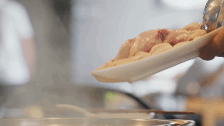 隨後在90°C的白滷水中浸泡25分鐘,再用雞湯“過冷河”降温,不僅可以防止雞味流失,還可以最大限度地保留雞肉的滑嫩。