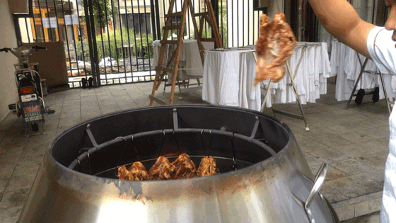 在烹飪之前,當地人往往會精心為仔雞做一次海鹽(不是)按摩,用雙手輕輕搓揉雞身,靜置半個小時後放在陰涼地方懸掛,等待雞皮晾乾。