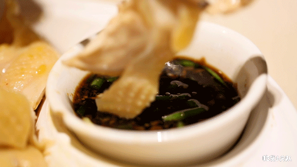 第二口,在沙姜和土榨花生油組合而成的醬料中打個滾兒,感受鹹香和滑嫩碰撞帶來的雙重體驗。廣東人對白切雞的敬意,就這麼簡單。