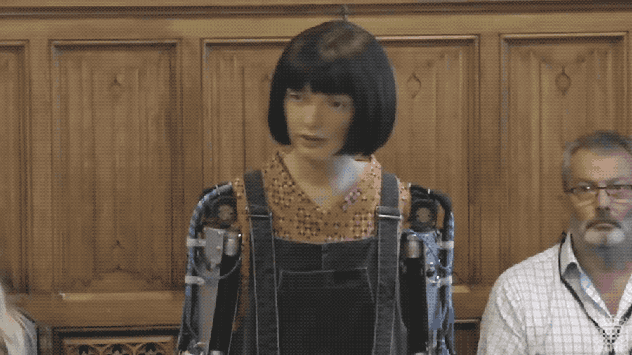這是英國議會對未來創意產業的一場調查聽證會,一位男爵夫人向機器人提問: