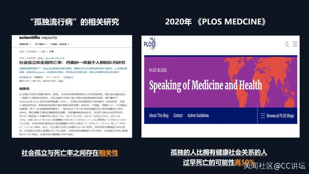 它因大面積輻射、數量激增等特點與流行病的特徵類似,所以它也被稱為了孤獨流行病。當下越來越多的孤獨流行病研究表明,社會孤立與我們死亡率之間是存在相關性的,根據2020年的相關研究表明,孤獨的人比擁有健康社會關係的人過早死亡的可能性高達50%以上。我想我們能做的,則是幫助這些孤獨的老年人去消除心中所產生的無力感,從而降低他們的死亡率。