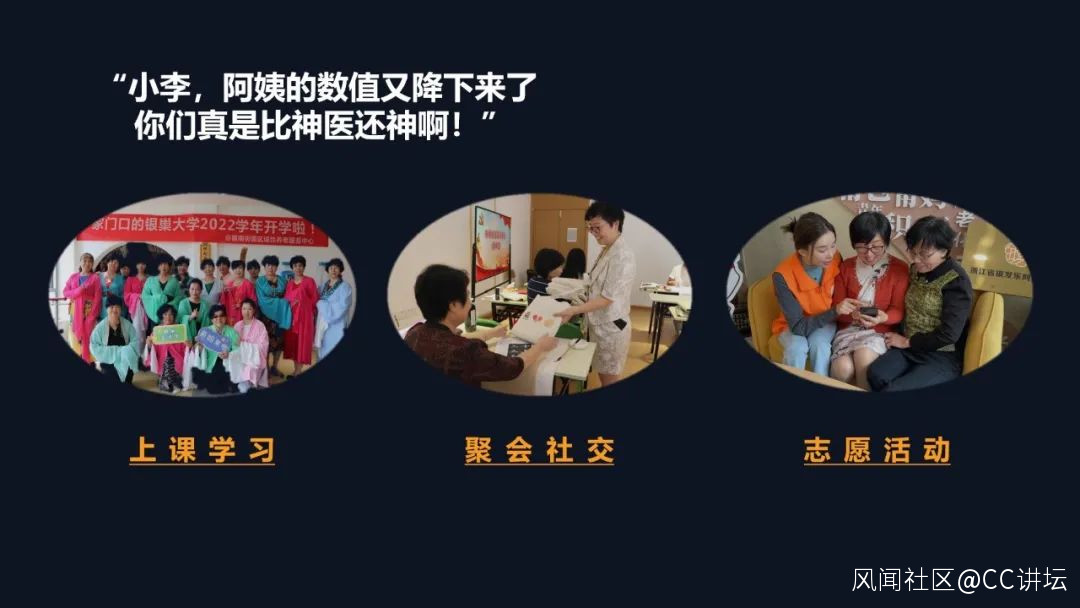 其實像這樣單獨安排插班生的事情,我們是不允許的,但是考慮到這個事情的特殊性,我也把這個後門給開了。那我在想怎麼去幫助這個阿姨,去更好地通過老年大學,來提升她生活的幸福感呢?三年時間過去了,現在的張阿姨每每看到我都會跟我説:“小李校長,阿姨的數值又下來了,你們就是阿姨的神醫!剛退休那幾年天天在家,我真的是硬生生被自己給憋出了心病。”