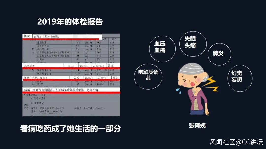 首先,我們先來看看這三張圖。我們可以看到這是浙江寧波張阿姨三年的體檢報,2019年時我們張阿姨她的電解質紊亂,並且血壓血糖的數值都不是特別理想。