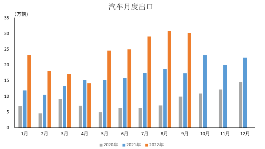 值得一提的是,中汽協發佈的數據顯示,9月,中國汽車出口30.1萬輛,同比增長73.9%,連續第二個月實現單月出口總量突破20萬輛。今年前9月,汽車企業出口汽車211.7萬輛,同比增長55.5%。