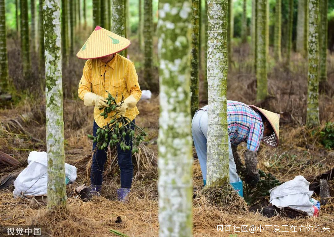 2019年9月5日,海南瓊海,嘉積鎮的農民在採收檳榔。/視覺中國