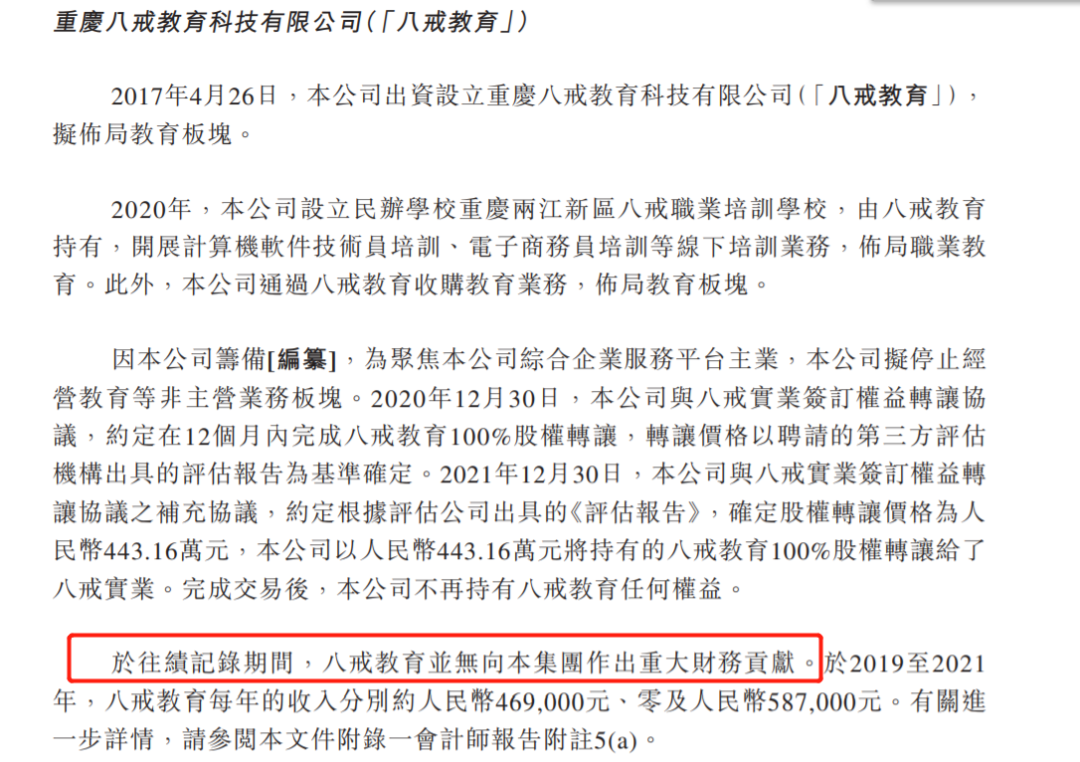雖然看起來都是關聯公司,但在本次招股書中,八戒教育已經被列入終止經營業務。
