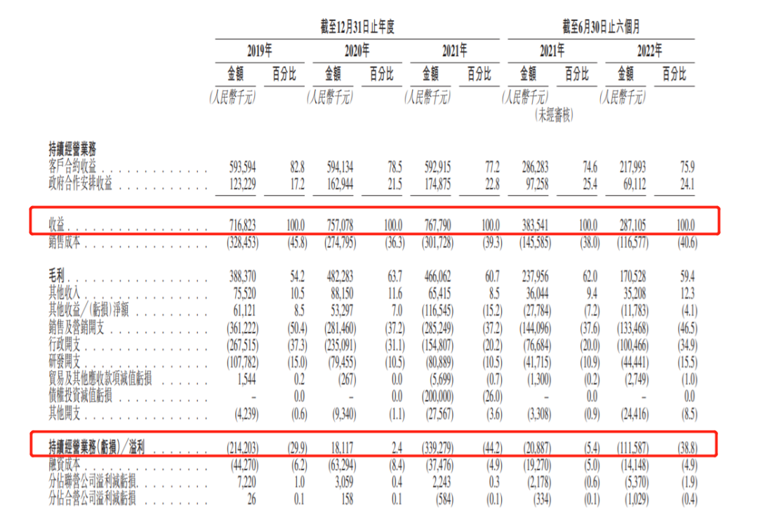 更大的問題在於盈利能力。從2019年至今,豬八戒公司的持續經營業務多數時間處於虧損狀態。2019年、2020年、2021年分別虧損2.14億元、盈利1812萬元和虧損3.39億元,三年合計虧損5.35億元。今年上半年,豬八戒公司虧損為1.12億元,上年同期的持續經營虧損為2089萬元,同比暴增434.2%。