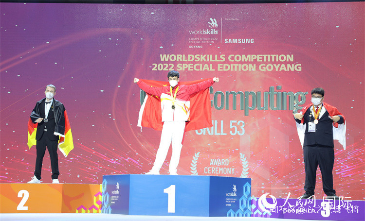 來自深圳技師學院的陳新源獲得雲計算項目金牌。人民網記者 馬菲攝