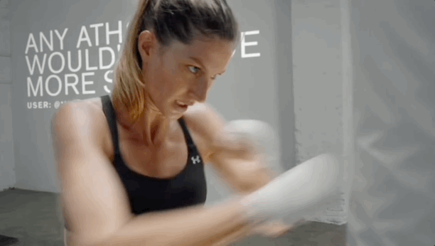 然而在廣告片中,專注的吉賽爾並沒有理會這些嘈雜,而是一直眼神堅定地打着沙袋,用身上的肌肉,和一次次有力的揮拳作為她無聲的回應。