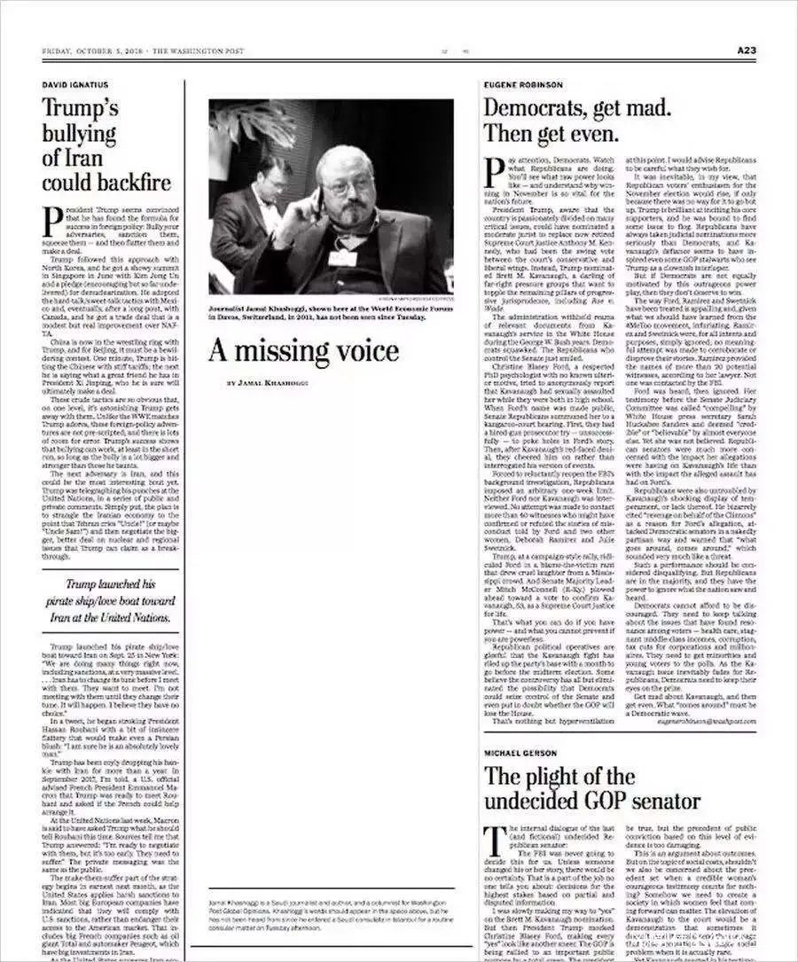 看到卡舒吉公開唱反調,沙特王儲氣得直咬牙,但是對於「敢於抹黑自己國家的恨國黨」,民主黨和西方輿論界是最喜歡的,聘用他成為了華盛頓郵報的專欄記者,並且獲得時代週刊評選的年度人物。