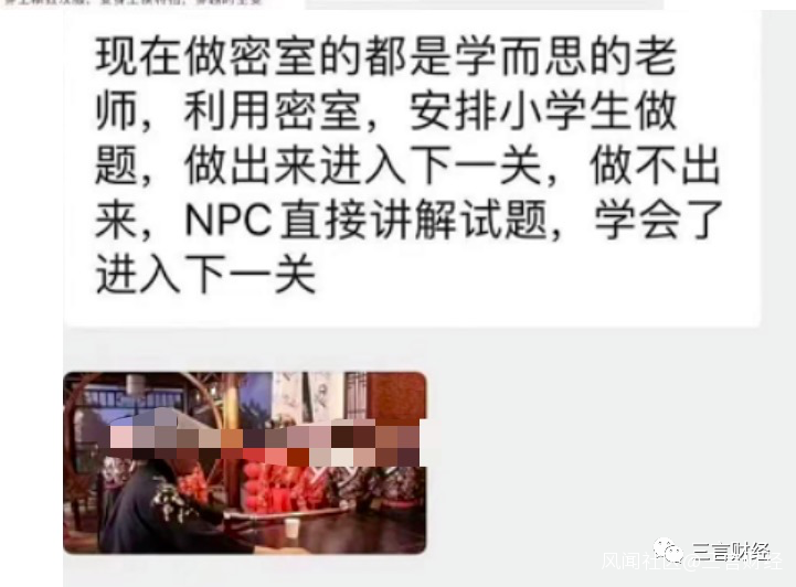 有網友稱,現在做密室的都是某教培機構的老師,利用密室安排小學生做題,做出來進入下一關,做不出來,NPC直接講解試題,學會了進入下一關。