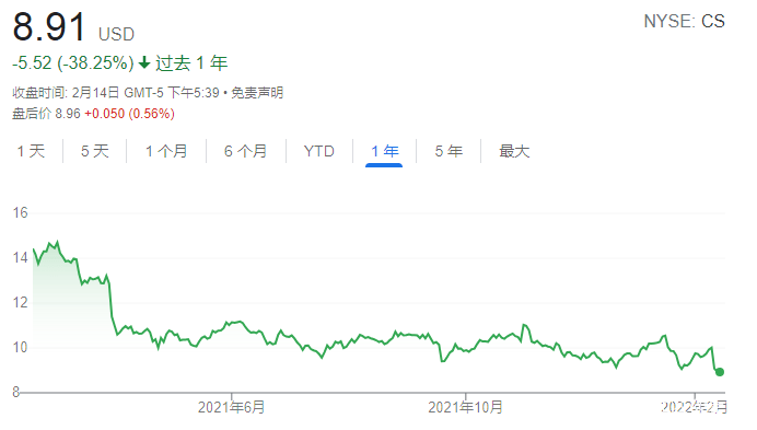 一來,瑞士信貸在最近幾年,業績堪憂,股價從 1000 億美元,跌去了 80%。