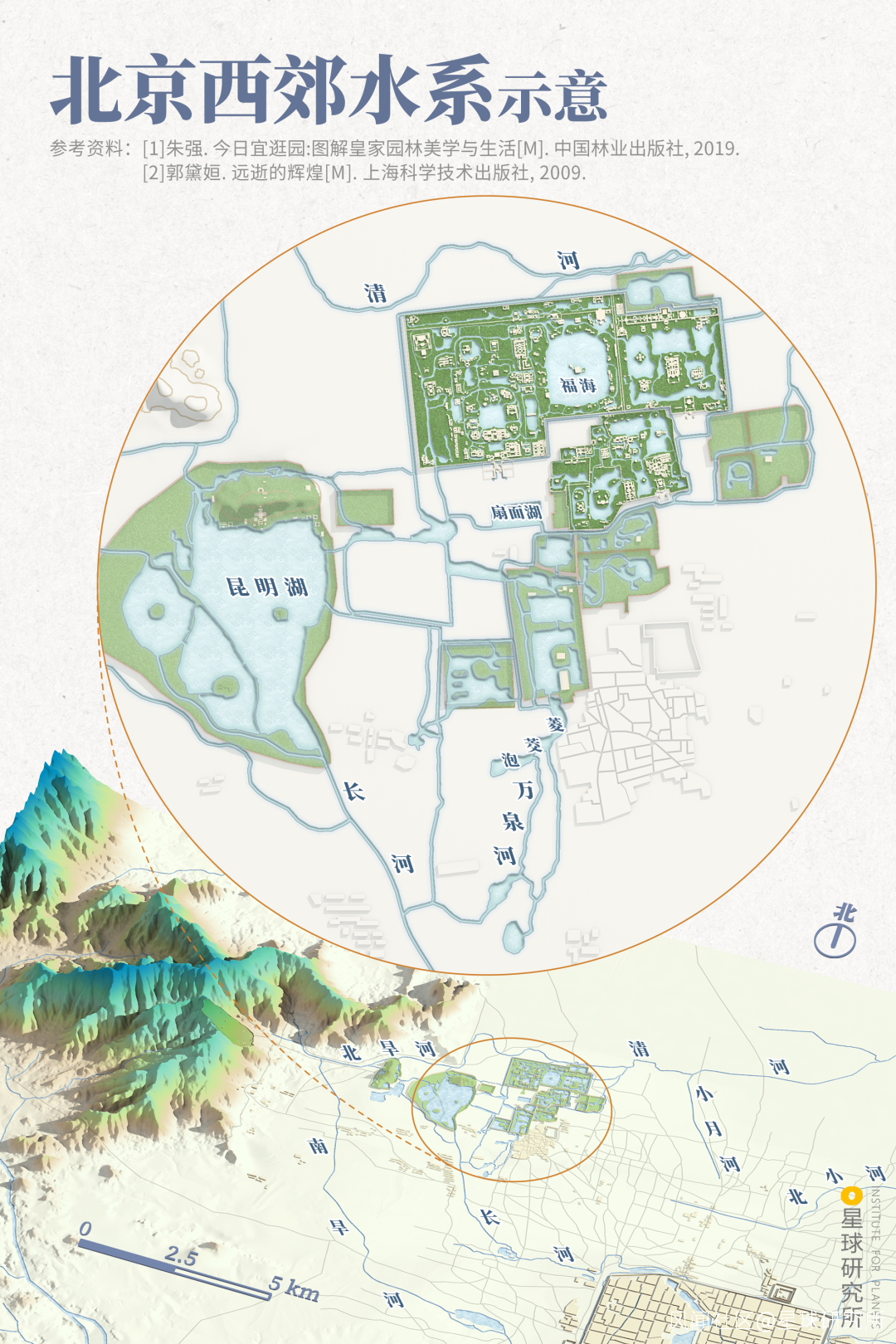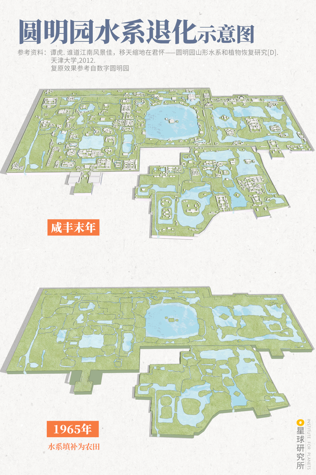 (圓明園水系退化示意,製圖@楊寧/星球研究所)