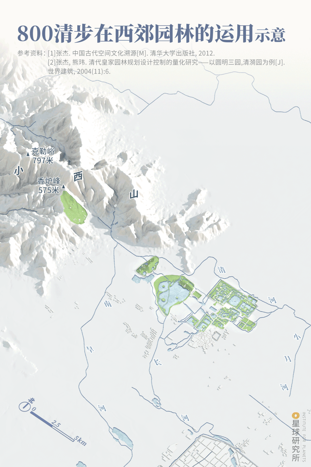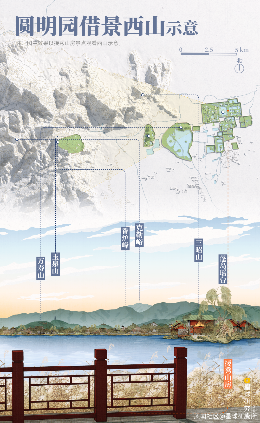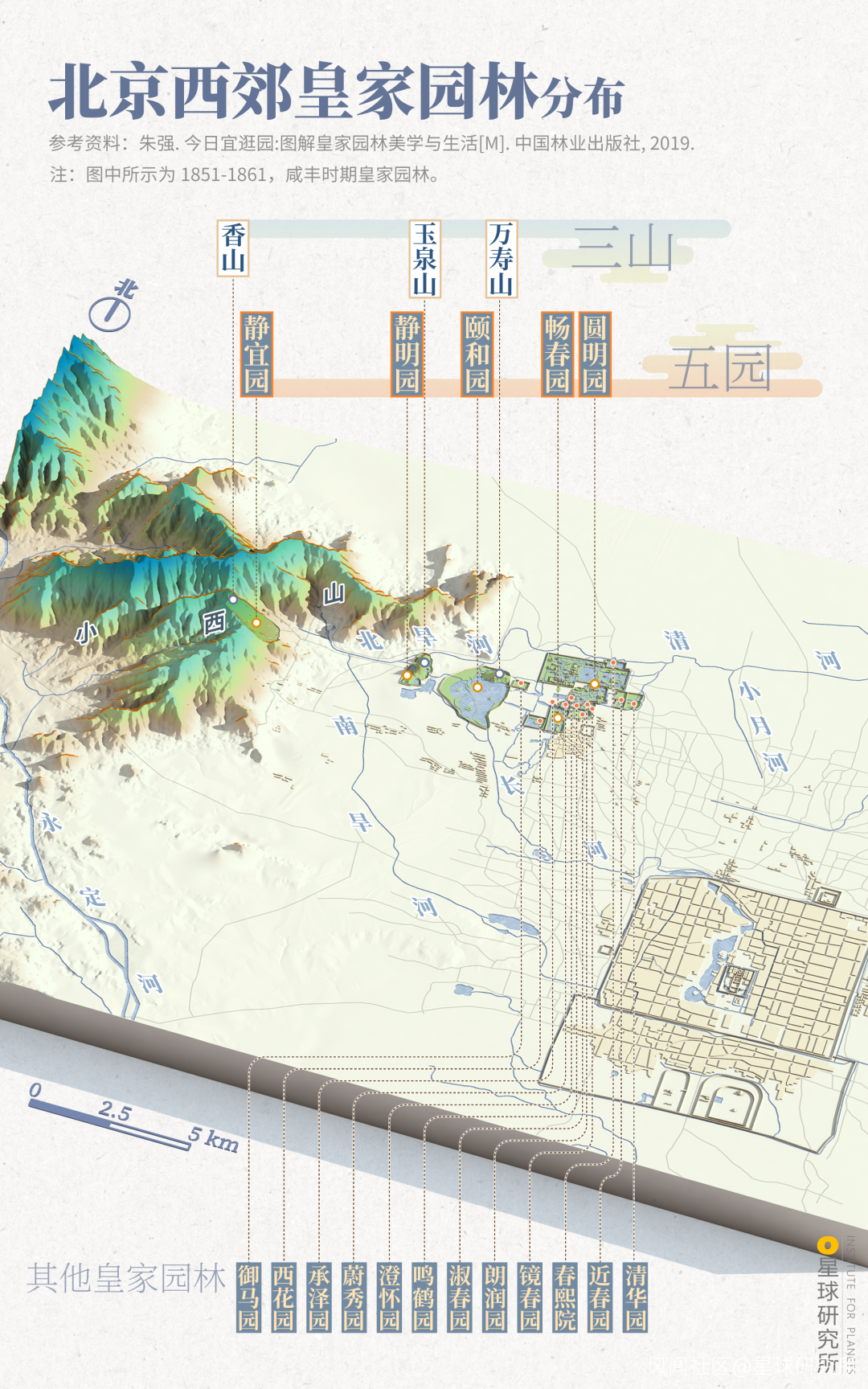 (西郊皇家園林分佈,圓明二字取自《中庸》:“圓而入神"“明而普照”,製圖@松楠/星球研究所)