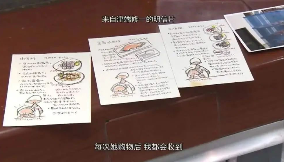 英子最常光顧鄰居們的小店,大多經營了40年以上。每次她買過物品,修一都會給店家寄一張明信片:很美味、加油!