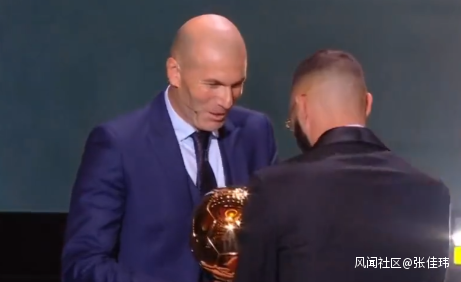 皇馬傳奇+教練,法國人齊達內,給自家愛徒皇馬的法國人本澤馬頒金球獎。