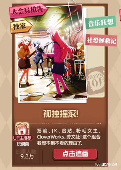 《孤獨搖滾!》是芳文社本季度的漫改動畫,目前播出了兩集,這個番它在國內目前的狀態是,B站説它已經買了,但估計是卡審核、現在還看不了,港澳台也沒有,只能去看字幕組版本。