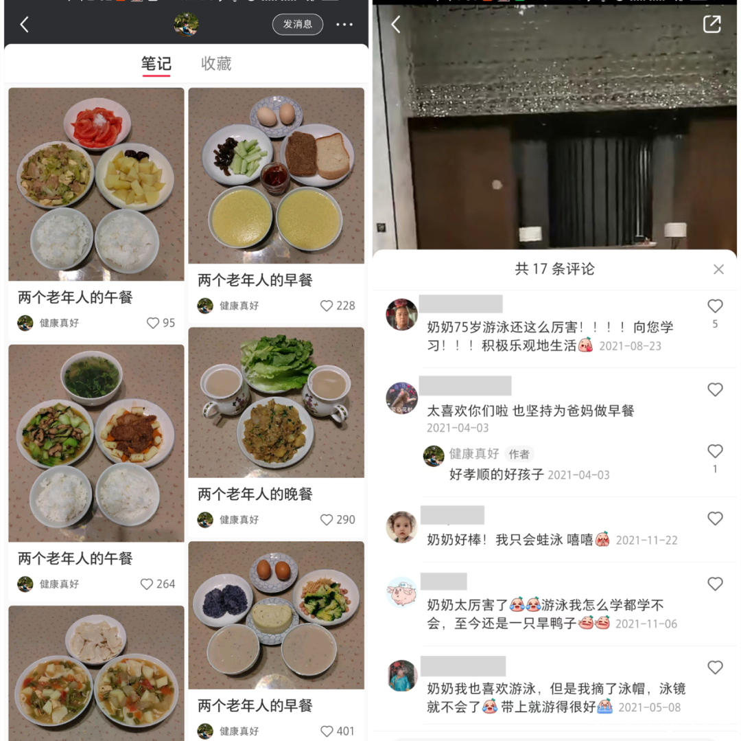 你以為的小紅書,露營、飛盤、氛圍感美女帥哥滿屏飄,評論裏的網絡梗隨處可見;實際上的小紅書,還有着另一方“歲月靜好”的天地——中老年人分享的生活日常。
