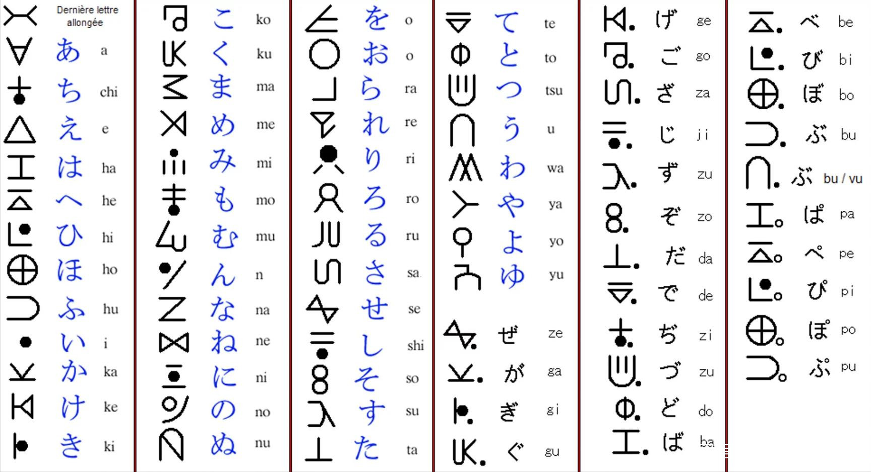 只要是基於字母表的文字,都可以用這種方式構造出虛構文字。漫畫《全職獵人》(Hunter ×Hunter,1998– )中的文字是便是基於日文五十音圖設計的。