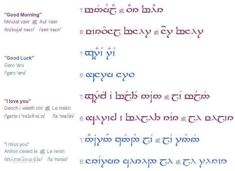 2. 騰格瓦文字(Tengwar):諾多精靈費諾(Feanor)承盧米爾,為昆雅發明的文字。