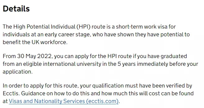 而HPI簽證則是面向畢業於全球頂尖大學的申請者開放申請,即使申請人沒在英國讀大學,也有機會在英國工作。