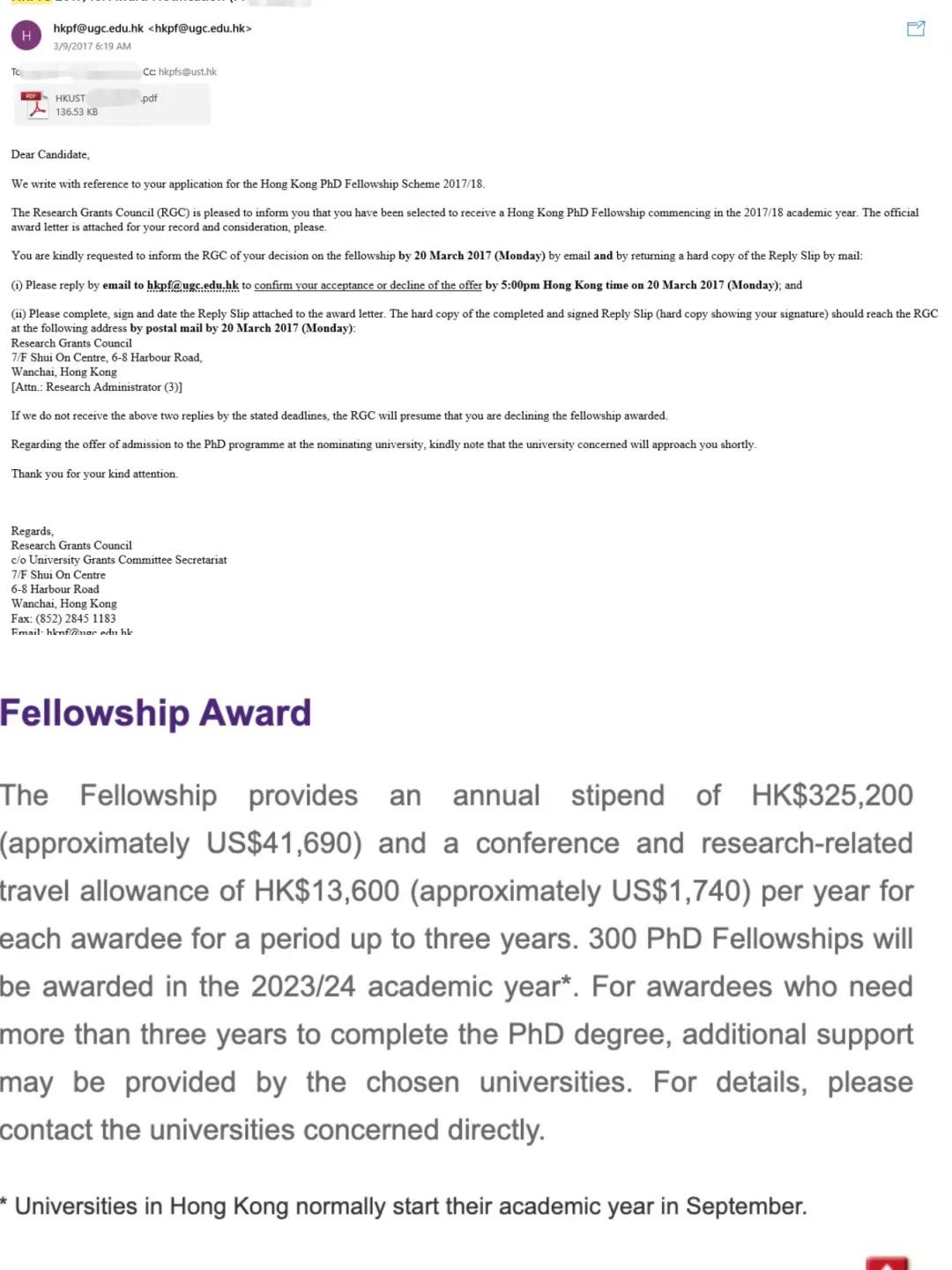 所以香港政府的130W獎學金宛若及時雨,成為了我最後的救命源泉。