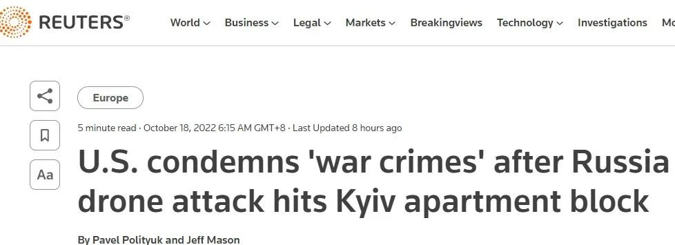俄軍對基輔建築發起無人機攻擊後,美國譴責俄“戰爭罪行”。圖片來源:路透社報道截圖