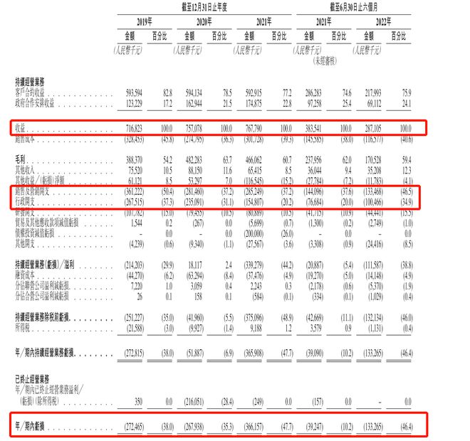 據招股書數據顯示,2019年——2021年,公司的虧損金額呈現出持續上升的趨勢,三年間分別虧損了2.72億元、2.67億元和3.66億元。到了2022年上半年,豬八戒網的營收為2.87億元,同比下滑25.1%;虧損1.333億元,三年半里累計虧損超10億元。