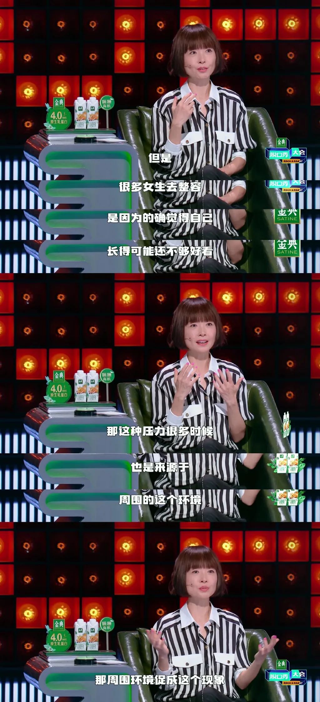於是即便多數人認可對方實力,她也堅持自己立場,説:“很多女生去整容,其背後的原因,來源於(你們男生)營造了這樣一種(容貌焦慮)的環境。”