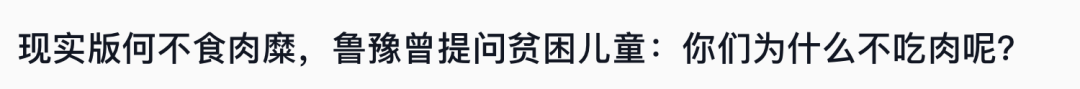 無視留守兒童的實際經濟情況,一再圍繞着“肉”來提問,於是這種明知故問在一些人眼裏,變成了她高高在上**“何不食肉糜”**的有力證據。