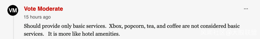 “是不是隻應該提供點基礎服務哦!像Xbox、爆米花、茶水咖啡這些,讓人誤會這裏是賓館。”