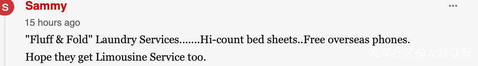 “洗衣服務,高織百分百棉牀品,免費國際長途,下一步,加長轎車接送嗎”
