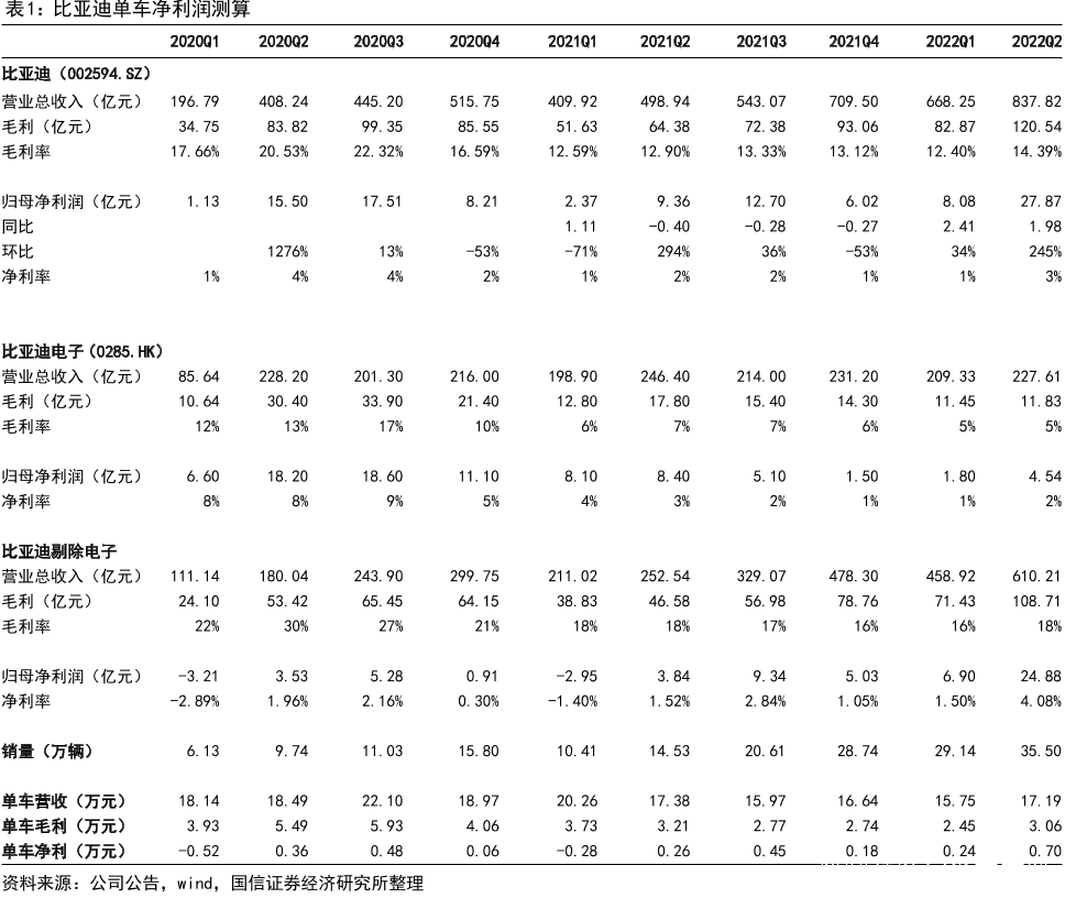 2022 年一季度,比亞迪單車利潤在2400 元左右,二季度,單車利潤7000 元左右,螺旋暴漲了屬於是。
